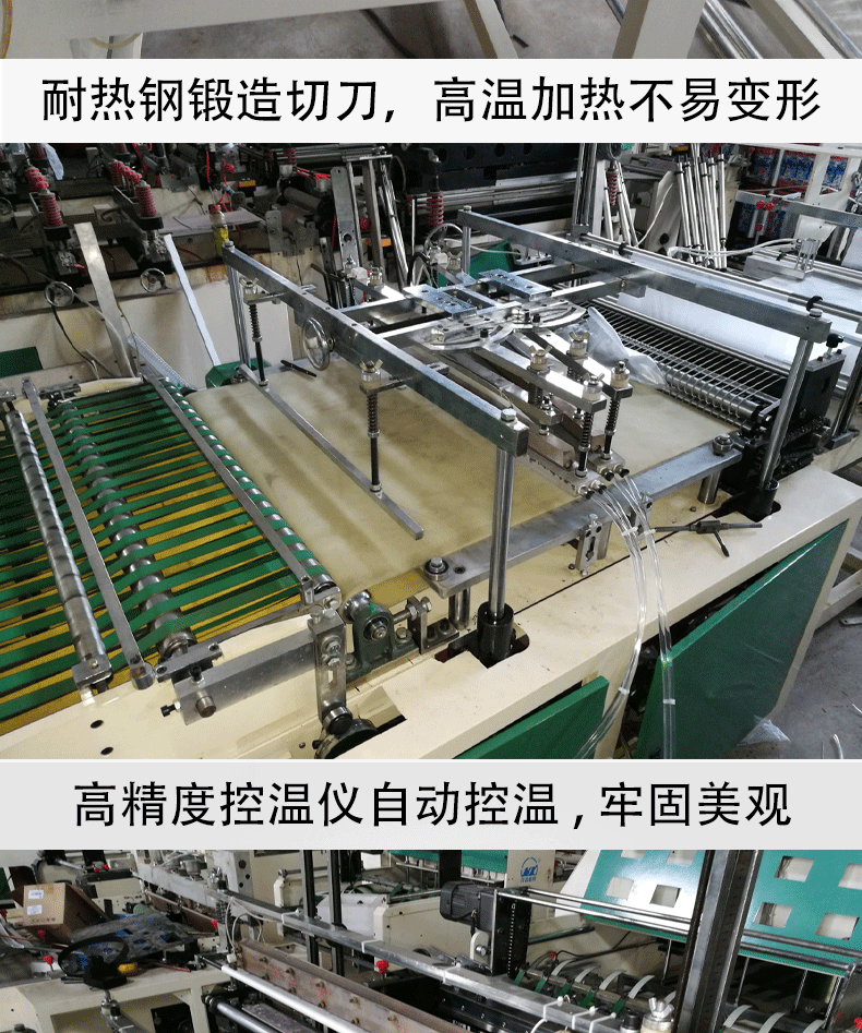 | 特點: *該機適用于BOPP、OPP、CPP、PE、PP等熱塑料性薄膜進行自動連續(xù)加工異形熱切袋,適用于制作服裝袋、文具袋、鮮花袋、三角袋等。 *采用日本伺服馬達控制,主電機采用臺灣變頻調(diào)速,意大利光電眼跟蹤彩印,出袋輸送裝置采用進口皮帶及臺灣變頻調(diào)速。 *放料架配置自動糾偏、磁粉制動張力控制系統(tǒng)。 *采用高精度控溫儀自動控溫,使不同厚度的膜都能保證封線牢固美觀。 *熱切刀采用進口耐熱鋼鍛造,高溫加熱不易變形,封棍采用耐高溫硅膠材料。 *電腦控制系統(tǒng)具有自動計數(shù),累計數(shù),提前報警,暫停等功能,自動控制開停機。 *根據(jù)客戶加工不同袋樣,可更換異形刀模具。 *由于不斷研究改進,我司保留改變設(shè)計之權(quán)利。 |