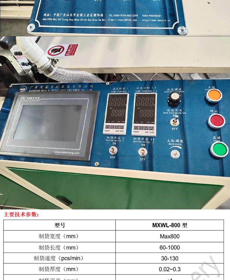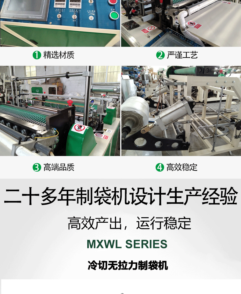 ![]() ![]() ![]() ![]() ![]() ![]() ![]() ![]() ![]() ![]() ![]() 特點(diǎn): *該機(jī)適宜加工各擋HDPE、LDPE、PP等筒狀,塑料薄膜的本色或彩色平口袋、背心袋。 *該機(jī)特點(diǎn)是減少機(jī)器在運(yùn)行中薄膜袋封口拉伸現(xiàn)象,能加工薄膜袋焊接寬度為1-10mm的袋子,增加袋子的焊接強(qiáng)度。 *電眼跟蹤彩印薄膜色標(biāo),圖文位置更準(zhǔn)確。 *焊刀采用合金鋼加工制作,分三段加溫,兩端用加熱管加溫,單獨(dú)溫度表控制。 *焊刀后面加倍送,單獨(dú)伺服電機(jī)控制,壓力用氣缸控制。 *電腦設(shè)定制袋長度和速度,廢品少,操作更簡單。 *具有送料、封切、計(jì)數(shù)、出料、報(bào)訊等自動化功能。 主要技術(shù)參數(shù): ![]() *由于不斷研究改進(jìn),我司保留改變設(shè)計(jì)之權(quán)利。 |