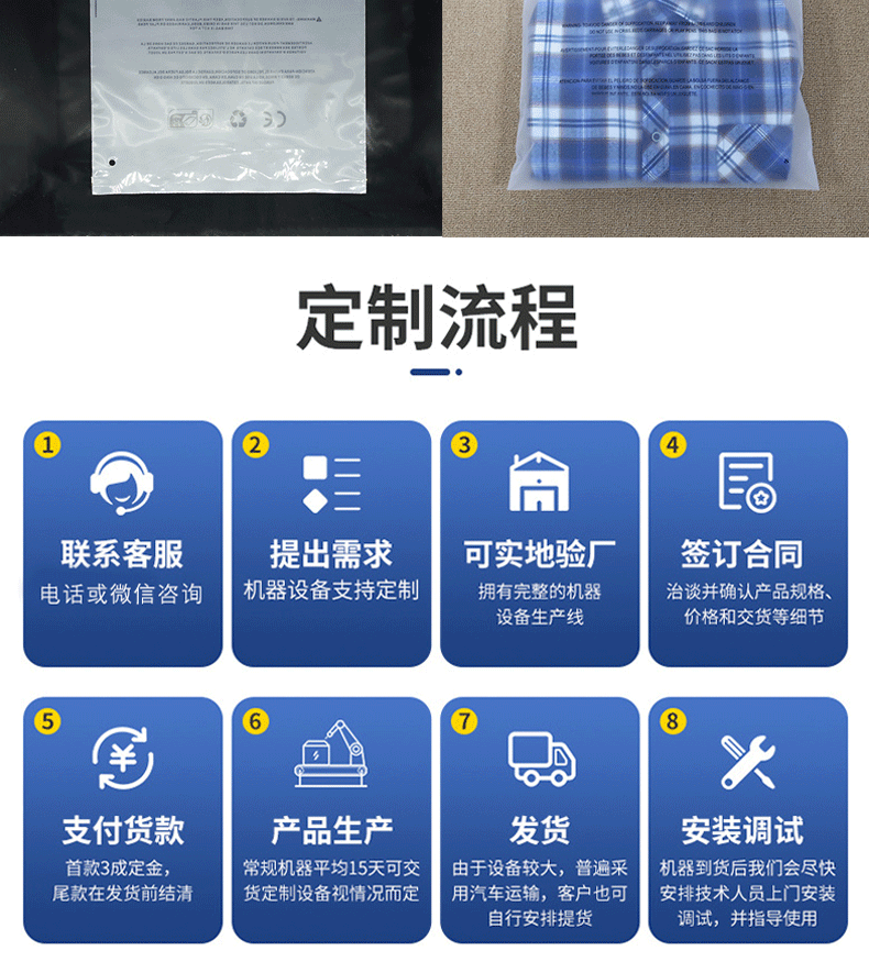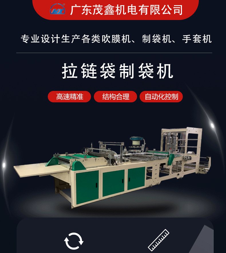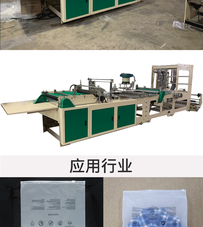 * 該機(jī)適應(yīng)于BOPP、OPP、CPE、PE、PP、PVC等薄膜進(jìn)行自動連續(xù)加工拉鏈袋,拉鏈?zhǔn)滞齑?/span>,產(chǎn)品廣泛應(yīng)用于服裝、文具、精品包裝等方面。